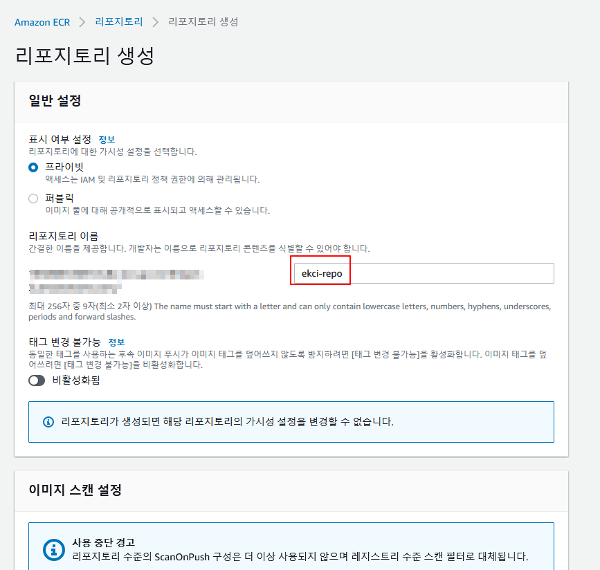 이제 Dockerfile은 준비가 끝났다. 다음 단계는 ecr을 생성하도록 하자. 별로 어렵지 않다.