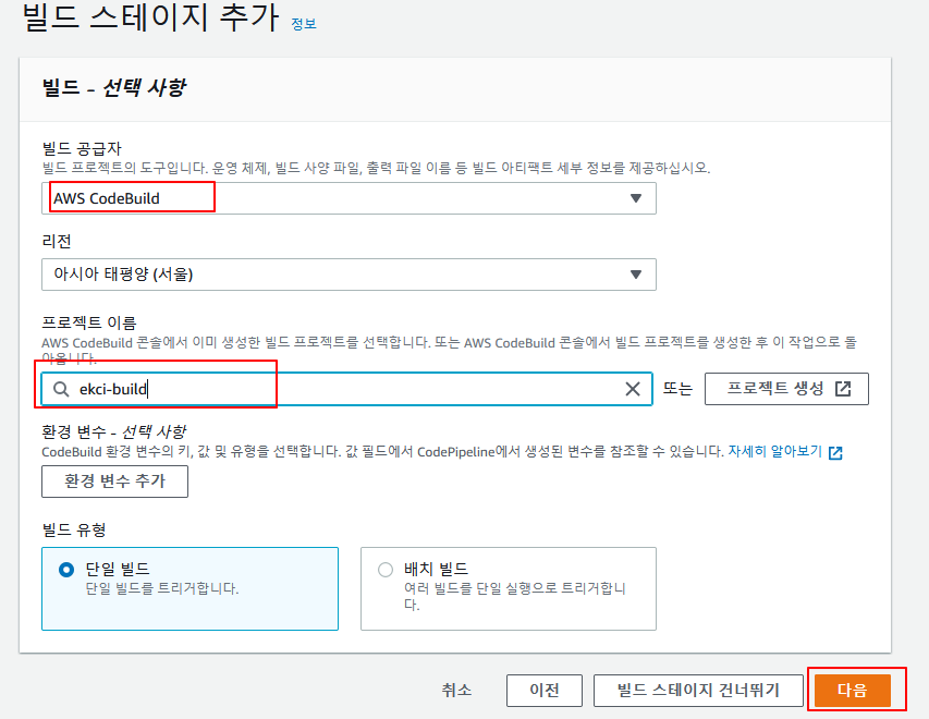 Codebuild를 오랫만에 만져봐서 순간 헷갈렸다.