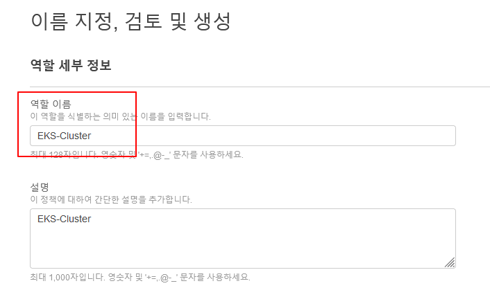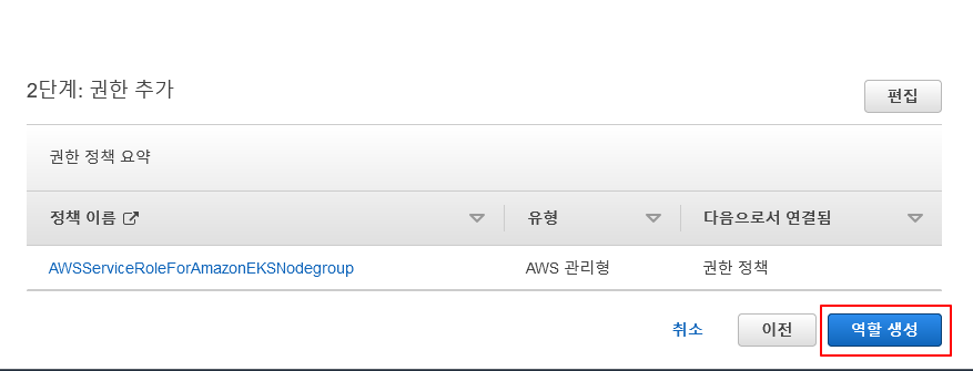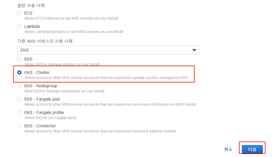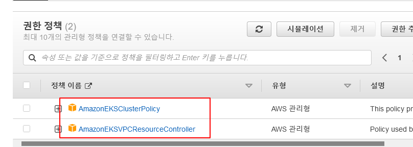 그 뒤에 Cluster용 IAM 역할에 다음과 같은 권한을 맞춰준다.