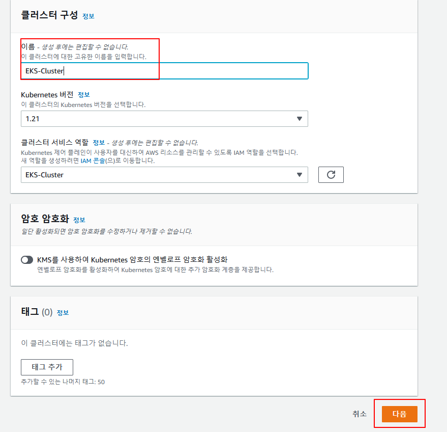 이제 EKS로 들어가서 Cluster를 생성해주도록 하자.